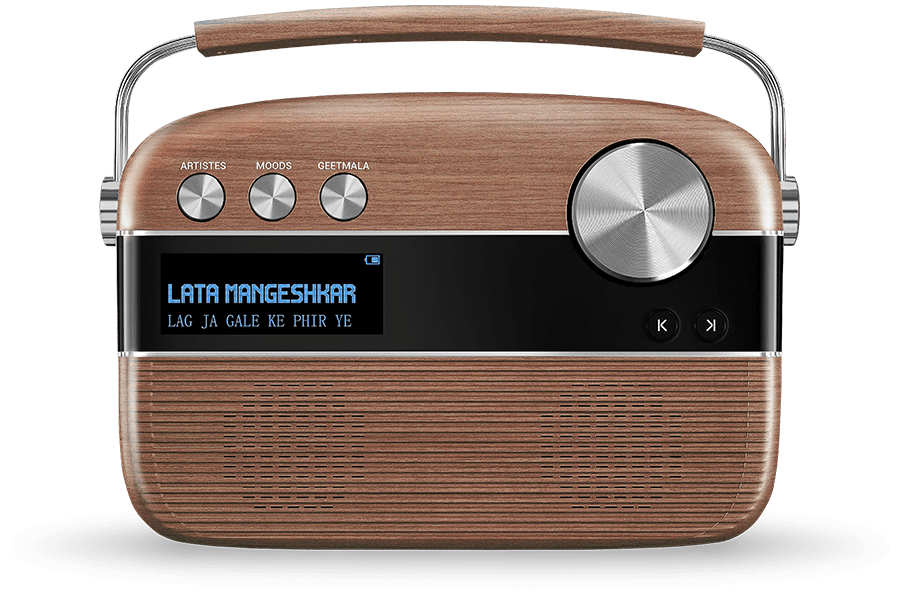 The 5000 songs music collection on Saregama Carvaan have been handpicked and classified based on singers, lyricists, music composers, moods etc. Each category can be selected by turning a jog-dial. So literally, with a simple turn of the knob, you can switch between Kishore Kumar classics, to R.D Burman�s pulsating hits, to timeless love songs or to soulful Sufi tracks � all in their original versions, back-to-back without any ads in between. What�s more, Carvaan has also got the entire Ameen Sayani�s Geetmala countdown show spanning 50 years.